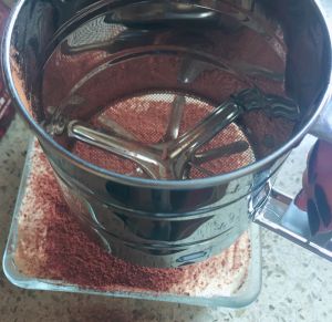 做好的放冰箱一夜或者四小时以上后拿出来撒上可可粉