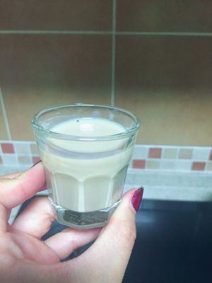 一小酒杯百利甜酒,我也不知道大概多少,估计有15ml吧,这杯是要和凉咖啡混合的