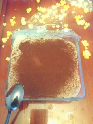 完工后,没有加过糖的提拉米苏,口感很不错哦。只是没有办法像蛋糕一样切块。用勺吃呵呵