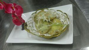 土豆切月亮型放入蒸床上汽蒸15分钟