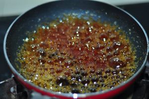 3) 煮到泡泡变的细小,颜色也变为棕色。(煮过头焦糖味道会发苦哦~)
