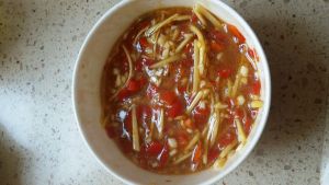 把剁椒,蒜末,姜丝,蚝油,花生油,鸡粉,放入一个碗里调好。