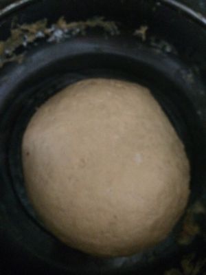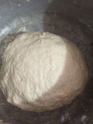厨师机选择3档开始揉面,面团成团后放入猪油,揉至面团呈现光滑的状态