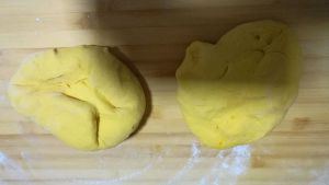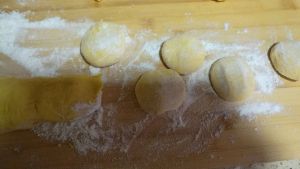 取一份搓成长圆柱形,直径约6cm,揪成30g小团。
