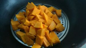准备好食材,紫薯,菠菜,胡萝卜,纯牛奶备用,紫薯切小块蒸熟成泥状备用,和萝卜,菠菜榨汁备用。