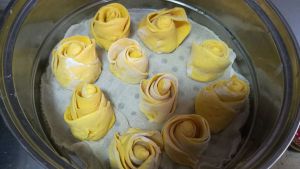 面团继续挨个揉捏排气,一个小面团大概揉捏三五分钟,并捏成馒头的形状继续放到热水上面发酵15到20分钟