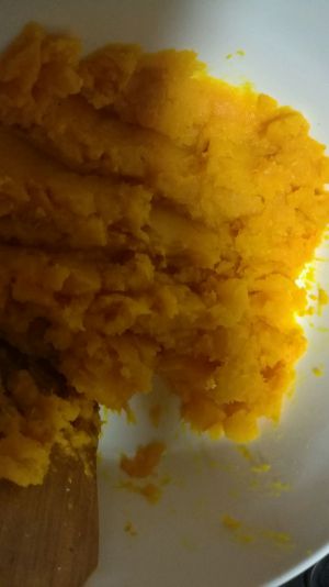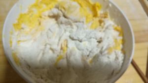 黄油中分次加入蛋黄。每次打匀后再加入一些蛋黄。