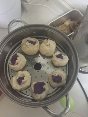 包进紫薯即可,放入锅中蒸熟即可,锅底可以刷一层油,防止小馒头粘锅