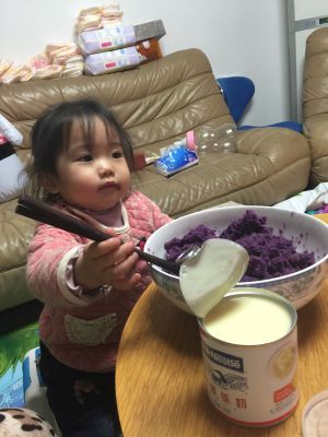 加入半瓶炼乳,搅拌均匀