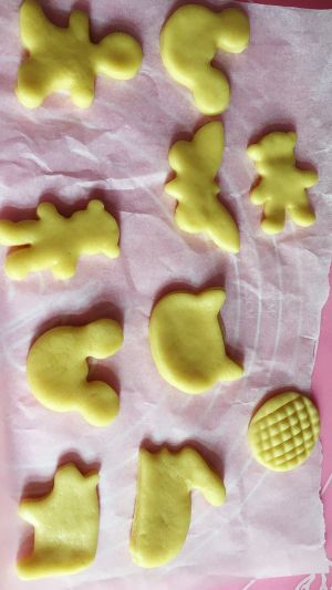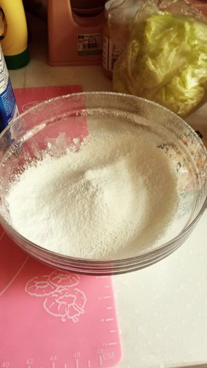 拿一个碗把各种粉(低粉,淀粉,泡打粉,奶粉)筛入,接着再把这些粉第二次筛入步骤一搅拌好的蛋液中。揉成面团。
