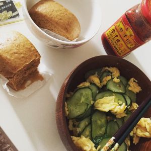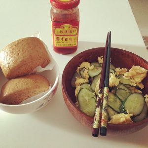 做法2:午饭燕麦馒头黄瓜鸡蛋