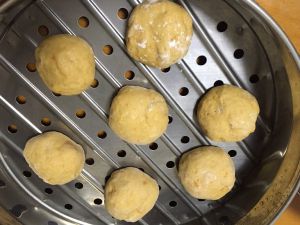 搓成小团,放置蒸锅上20分钟后上锅蒸20分钟