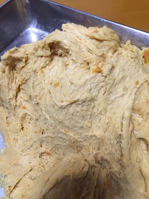 发到原来面团的两倍大就好了,碱一点点用水化开,(碱的作用是去除面的酸味,有就放没有可以省略)揣到面里。