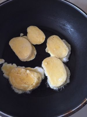 馒头切片,鸡蛋打散。