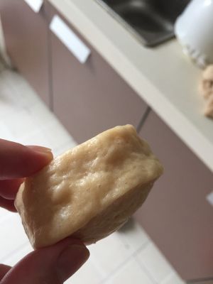我加的干酵母有点多了,唉,没有预期的雪白的颜色,不过尝了一下,味道非常棒,淡淡的甜,奶香味儿十足