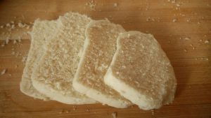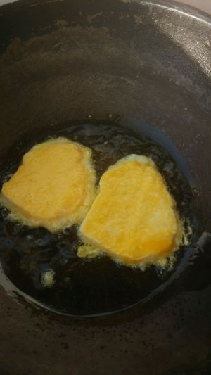 锅里放油,小火烧至五成热,放入馒头片,注意要用小火哦,以免糊