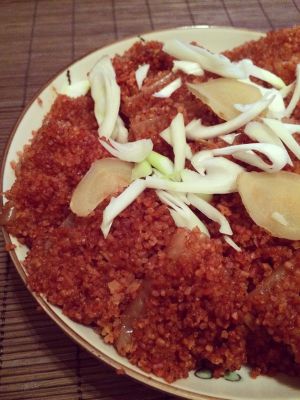 炒锅烧热,加入糯米和材料B的全部香料,小火翻炒到糯米变焦黄,盛出放凉
