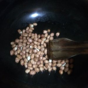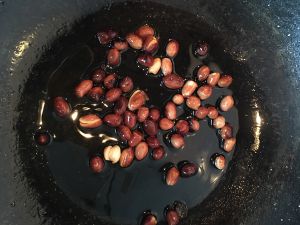花生米加油,小火炸香,捞出备用
