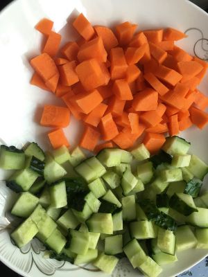黄瓜和胡萝卜切丁