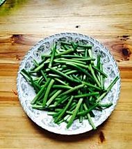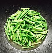 锅洗净,放入适量油,将蒜苔炒至七分熟捞出备用。
