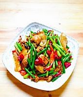 下油锅翻炒,看着肉有点卷时下豆4,豆瓣酱,炒匀下蒜苗,爆出香味,下调料白糖、味精。起锅!完成了
