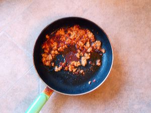 肉末炒熟后出锅备用