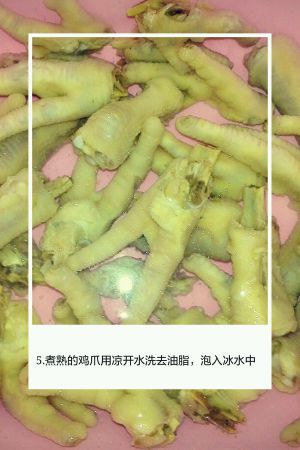煮熟的鸡爪用凉开水洗去油脂,浸泡在冰上中,吃起来会Q弹一点