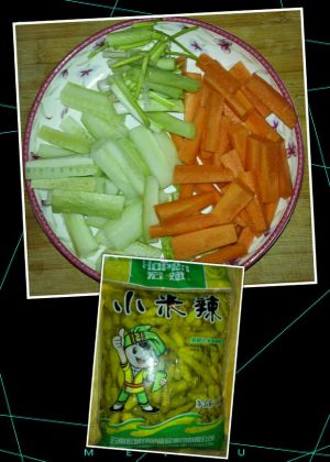 胡萝卜,黄瓜,香葱切好,泡椒备用