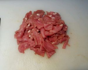 肉片放淀粉、料酒腌制,一定要多放水,让淀粉不粘稠,充分抓开肉片,防止炒肉片粘连。