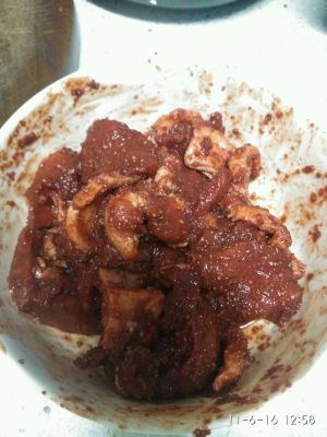 加入料酒,生抽,蚝油,十三香腌制半个小时,放入冰箱冷藏效果更佳!