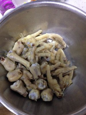 准备所有食材洗干净,红白萝卜去皮备用。鸡爪洗干净泡出血水。
