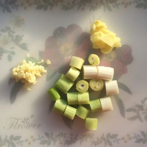 所有准备工作完毕,除葱姜蒜没拍照,所有食材都在这里。下边开炒。