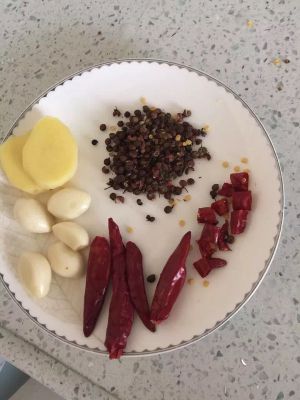 大料香叶干辣椒花椒爆出香味,装碗备用