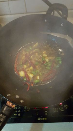 第五步,翻炒两分钟后加入适量事先烧好的开水,并将土豆倒入锅中,撒花椒,然后盖上锅盖,开中火熬煮10-20分钟等待收汁完成就可以啦。