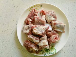 第二步,处理排骨。锅中倒入适量清水,烧开后将排骨倒入锅中焯水。水再次沸腾后,捞出排骨,用清水洗净备用。