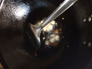 倒入干辣椒,再爆香;