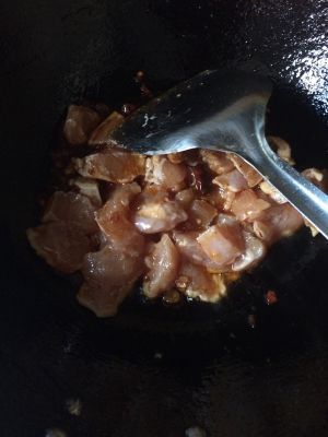倒入鸡丁,兜几下;