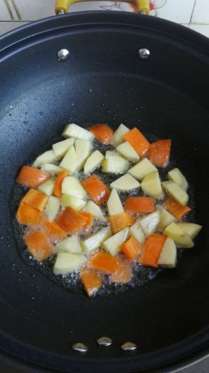 土豆丁,胡萝卜放锅里炸