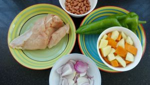 全部材料切丁,鸡丁用料酒,生抽耗油,淀粉腌制待用