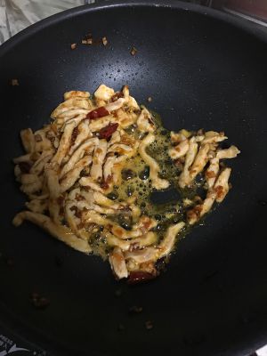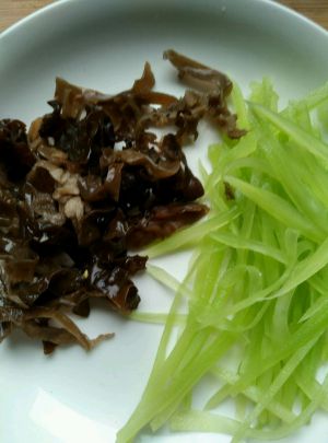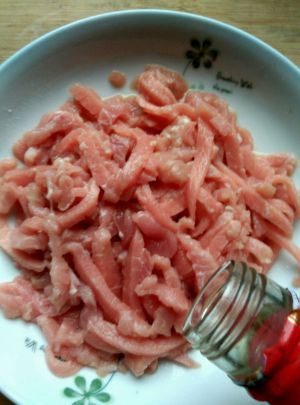 里脊肉切丝放少许盐.料酒.豆粉伴匀码味十分钟。