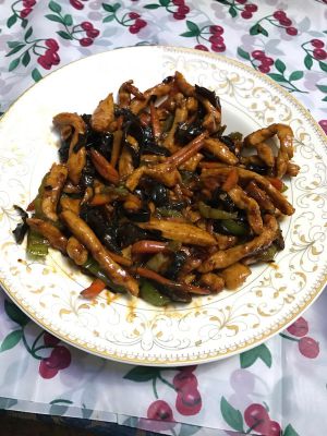 一道鱼香味浓.酸甜适口的鱼香肉丝就做好了。