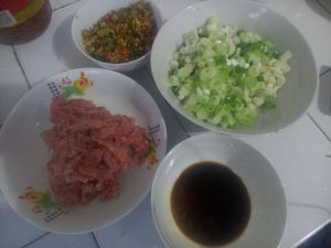 准备豆瓣酱一勺 葱 姜 蒜 切成碎末 备用