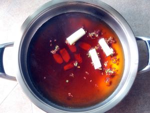 锅里加清水,烧开后加入材料1,加半勺老抽,2勺料酒混合成汤汁,煮3分钟。