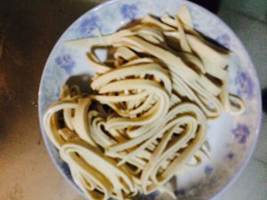 将千张或者豆芽,生菜,等等配菜事先锅中开水淖一下即可。方便最后盖码后入味快。