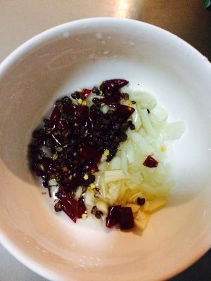 花椒,干辣椒,蒜,调料洗净切碎弄好。