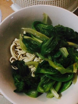 同上,淖一下。特别指出青菜淖两分钟即可,生的都可以直接码底。