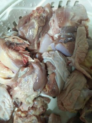 将鸡洗干净切块备用。