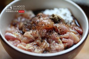 1.鸡腿肉剁成小块、用料酒和鸡粉腌制片刻备用。