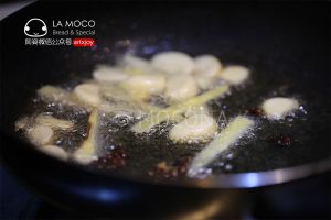 重新热少量的由,让如姜丝蒜片炒香