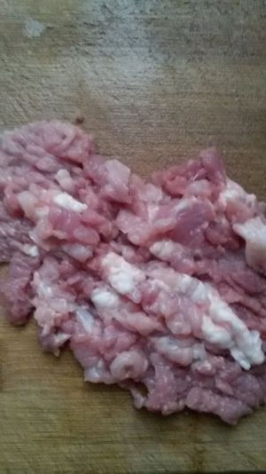 干辣椒、蒜切碎,葱花切丝,瘦肉馅准备好。